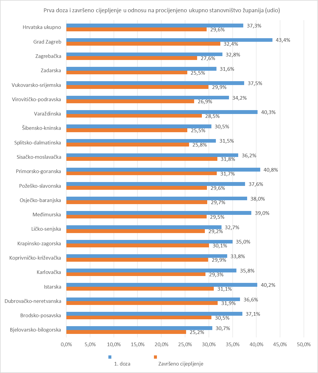 Prema podacima dobivenim od Doma zdravlja Senj u Senju je do sad cijepljeno 2196 osoba s jednom dozom cjepiva ( 30,5 %),od kojih je 1667 osoba (23,5 %) primilo obje doze cjepiva. Navedeni podaci odnose se na udio cijepljenih s obzirom na ukupan broj stanovnika. Ako se isti podaci promatraju u odnosu na odraslo stanovništvo onda proizlazi da je s jednom dozom cijepljeno 35%, a sa dvije doze 27% odraslog stanovništva. Na žalost ne možemo se pohvaliti velikim odazivom, jer po postocima spadamo među krajeve s najmanjim brojem procijepljenog stanovništva.