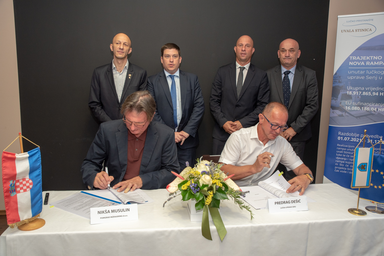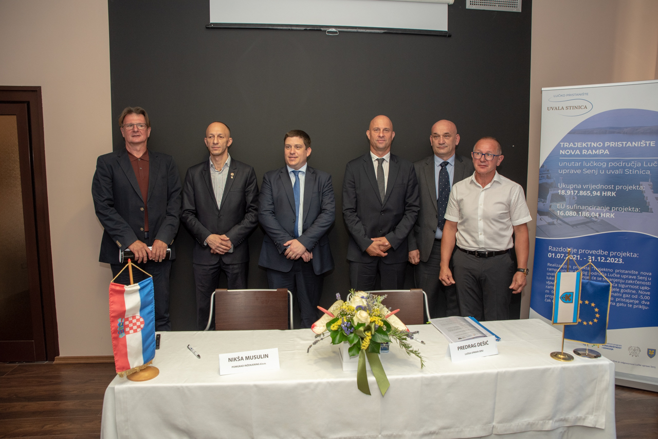 U sklopu konferencije potpisan je i Ugovor za izvođenje građevinskih radova na Trajektnom pristaništu nove rampe unutar lučkog područja Lučke uprave Senj u uvali Stinica. Ugovor je sklopljen s tvrtkom POMGRAD INŽENJERING D.O.O. za graditeljstvo. Vrijednost ugovora bez PDV-a je 10.887.143,32 kn, dok je rok izvođenja radova i završetka ugovora 15 mjeseci od dana uvođenja u posao. Predmet nabave su radovi izgradnje nove rampe kojim će se osigurati minimalni gaz od -5,00 m što će omogućiti istovremeno pristajanje dva projekta broda, bočno vezivanje na gatu te priključak vode i struje. Projekt izgradnje nove rampe obuhvaća izgradnju dvije neovisne konstruktivno tehnološke cjeline: